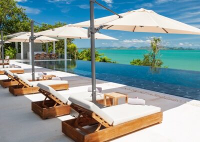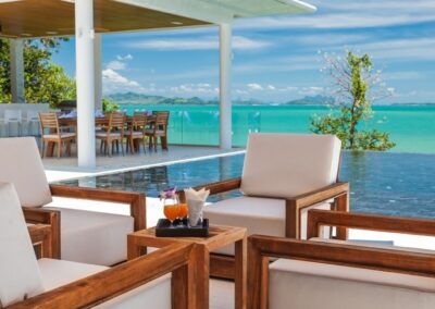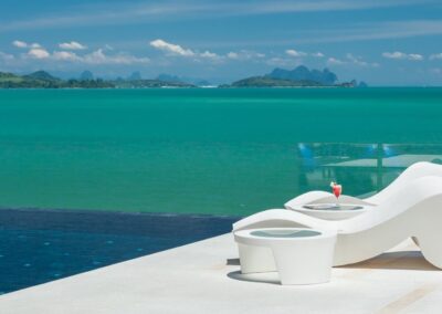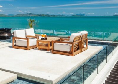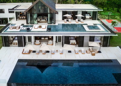 Among its facilities include a basketball court, putting green, a large fully-equipped fitness gym, a spacious cinema, an incredible infinity pool with panoramic views of the Andaman Sea and the limestone formations of Phang Nga Bay, an outdoor jacuzzi, and a much-coveted oceanfront location.