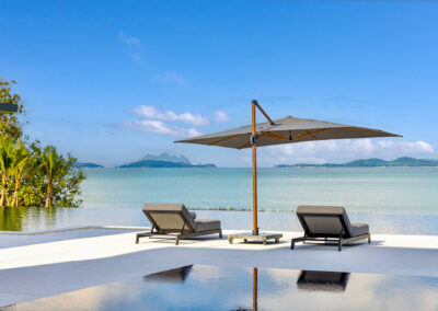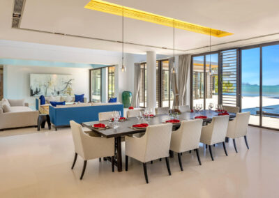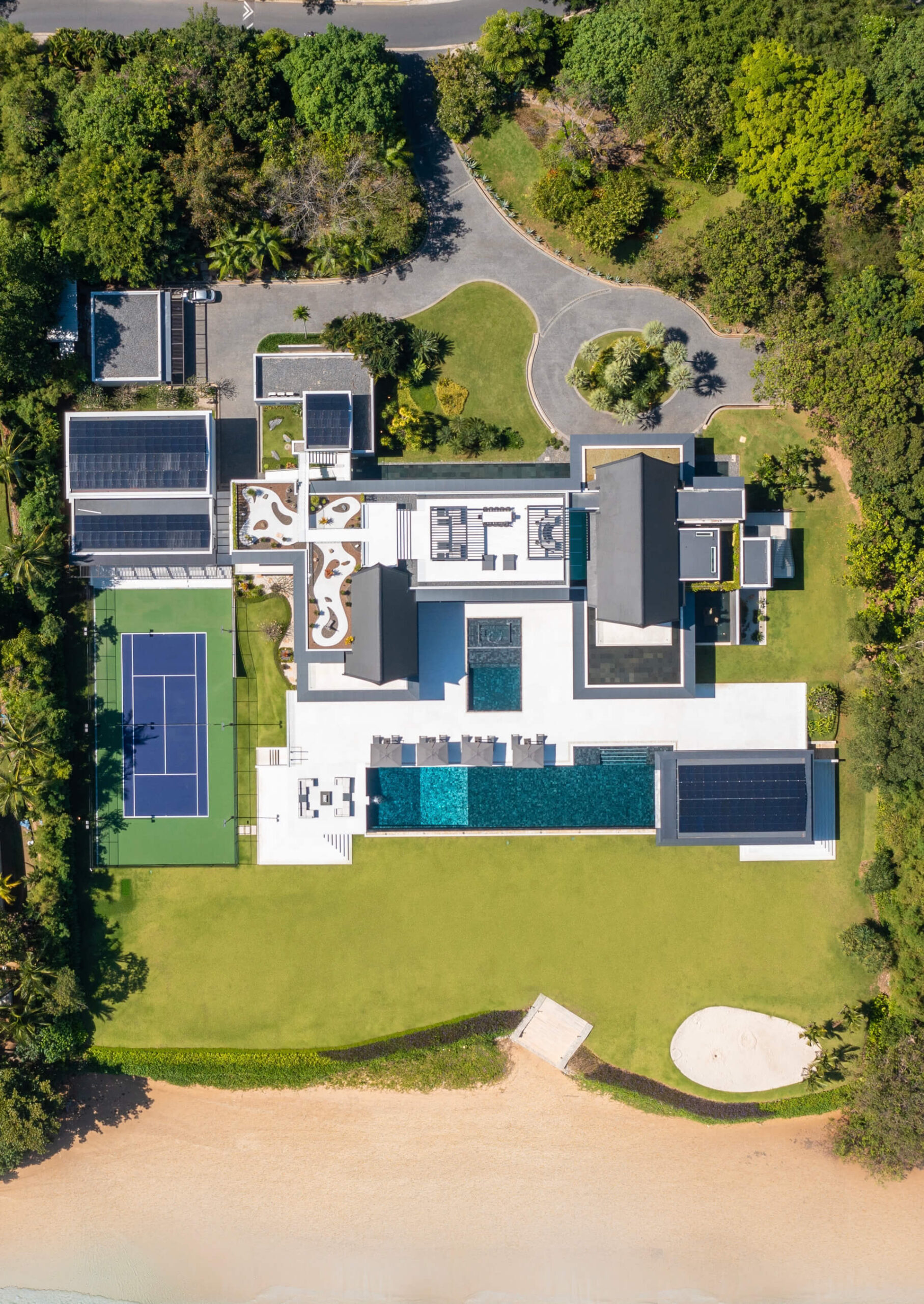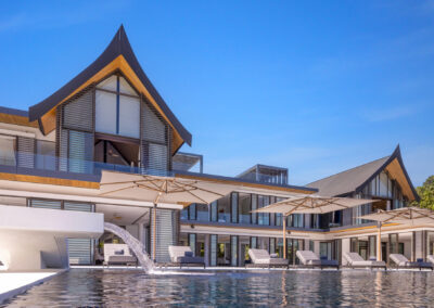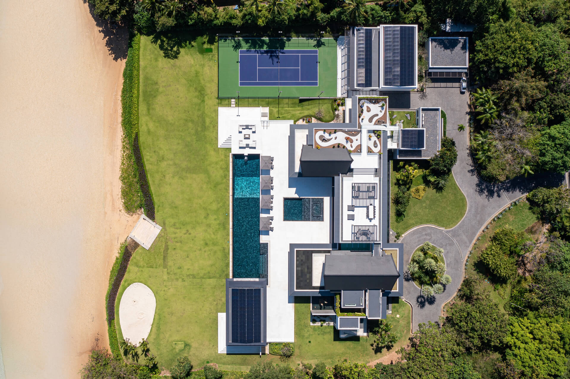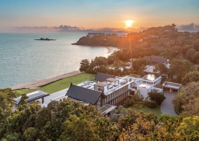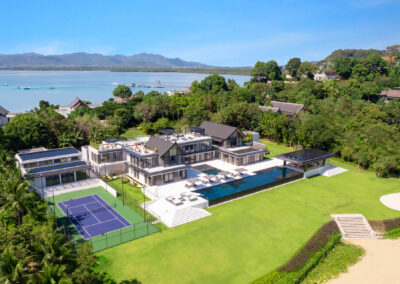 An exclusive tropical paradise awaits on the eastern coast of Phuket within the Estate of Cape Yamu. The immaculate Villa Amarasara stands on 16,000 square meters of spectacular beach and green grounds, fronting Phang Nga Bay and the sapphire waters of the Andaman Sea.