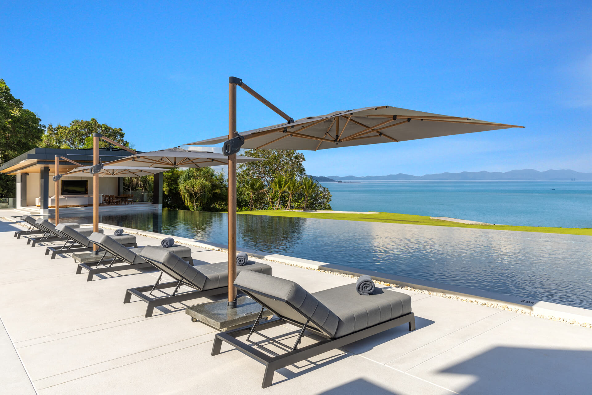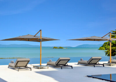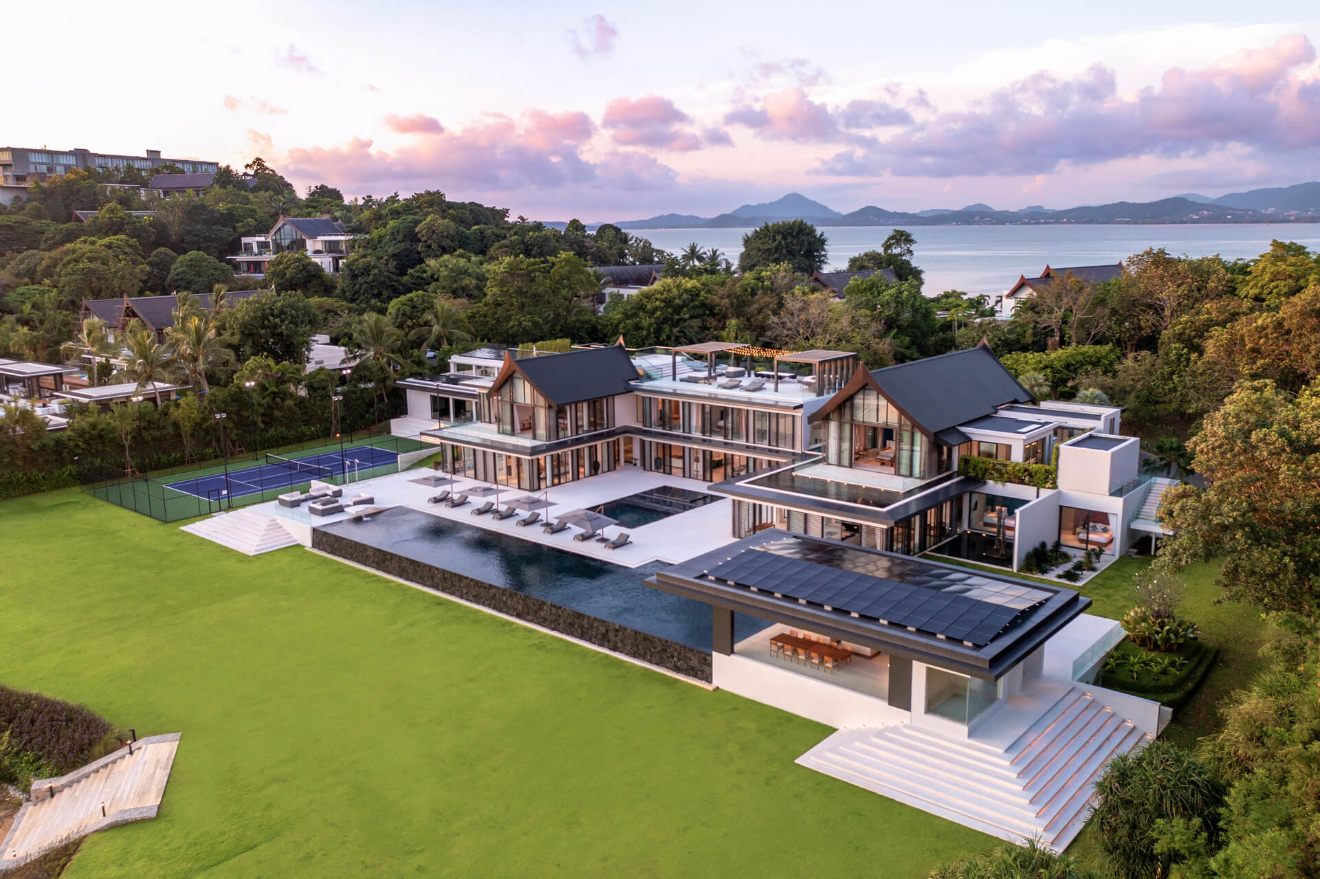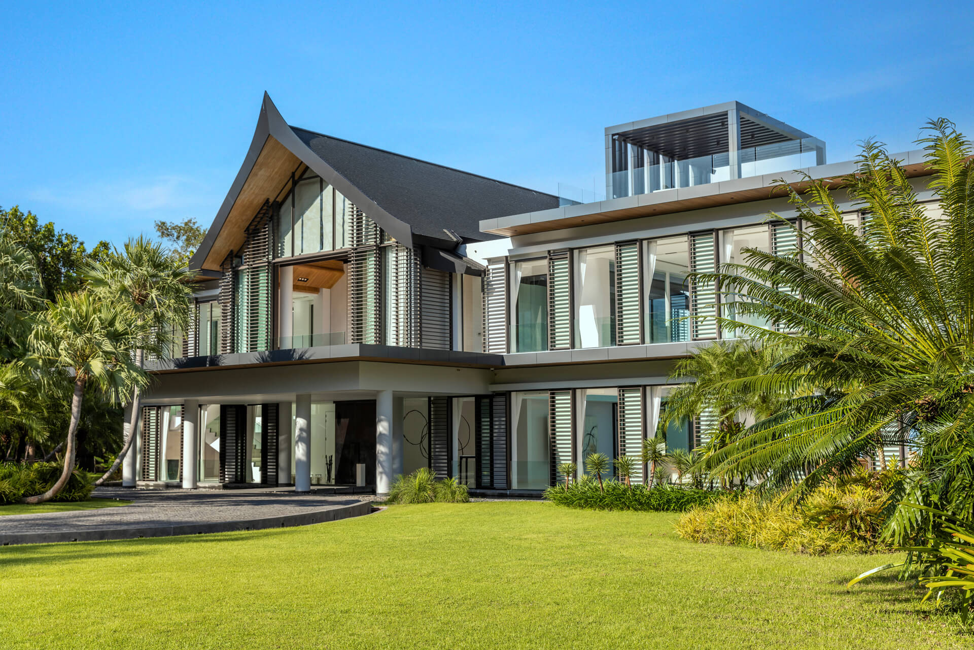 An exclusive tropical paradise awaits on the eastern coast of Phuket within the Estate of Cape Yamu. The immaculate Villa Amarasara stands on 16,000 square meters of spectacular beach and green grounds, fronting Phang Nga Bay and the sapphire waters of the Andaman Sea.