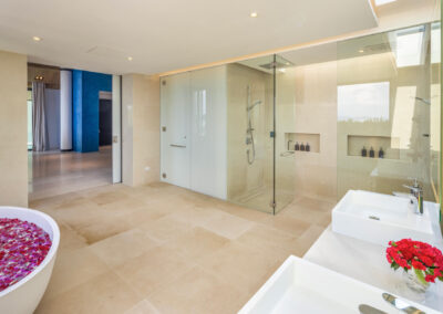 The bedrooms in Villa Amarasara comfortably accommodate up to 14 guests and two children. Each bedroom holds a pristine ensuite that inspires a soothing shower or a sumptuous dip in the tub.