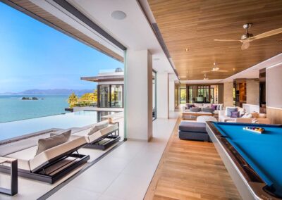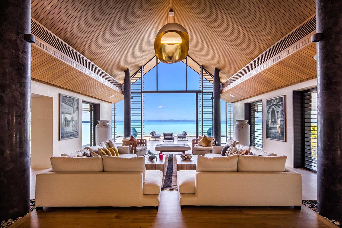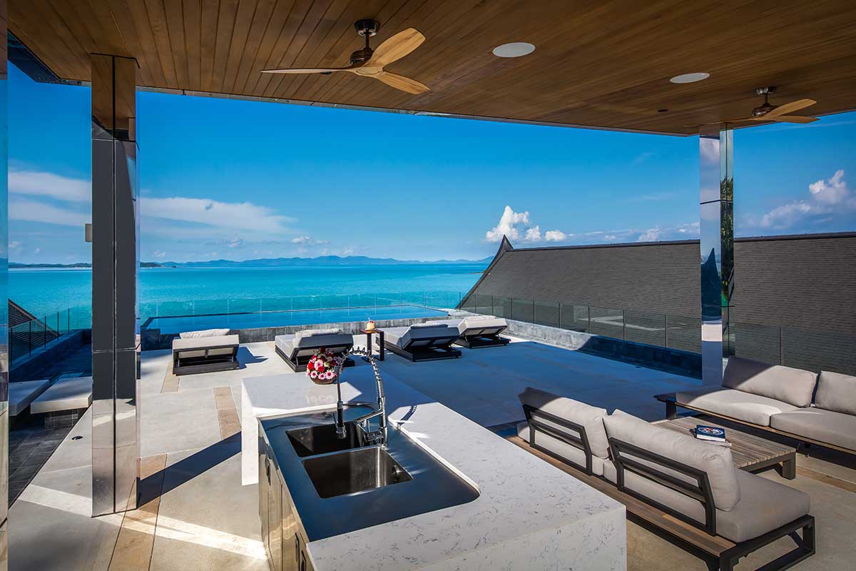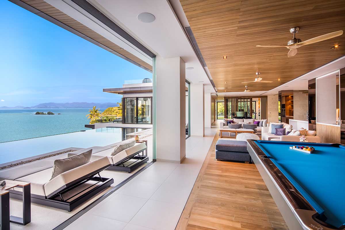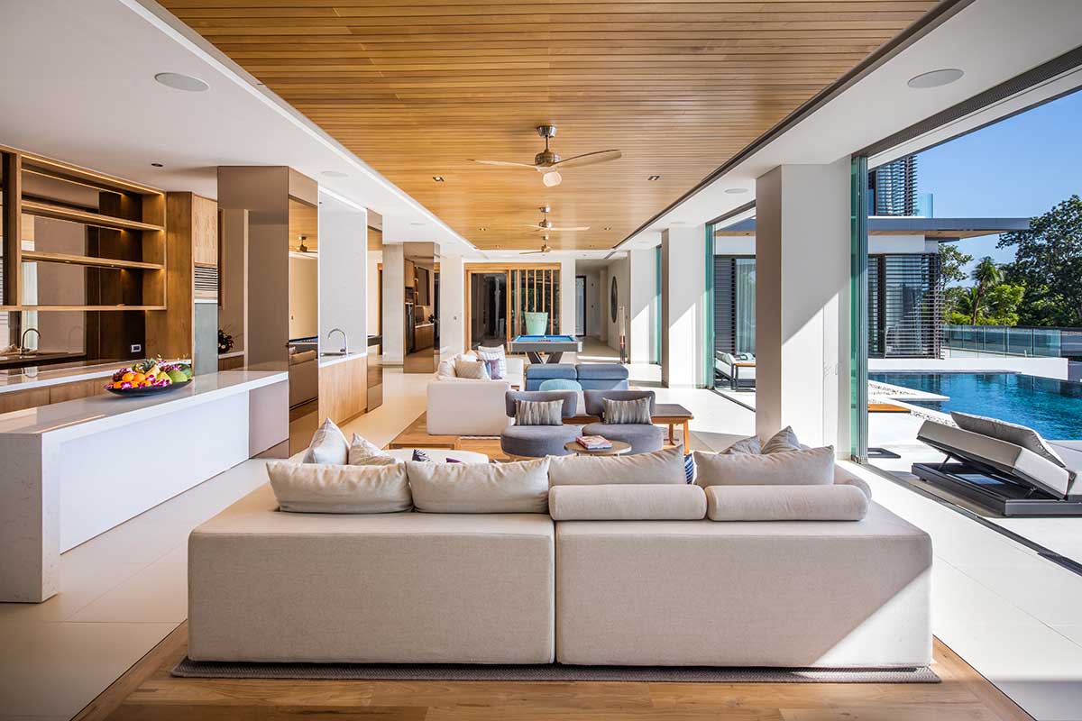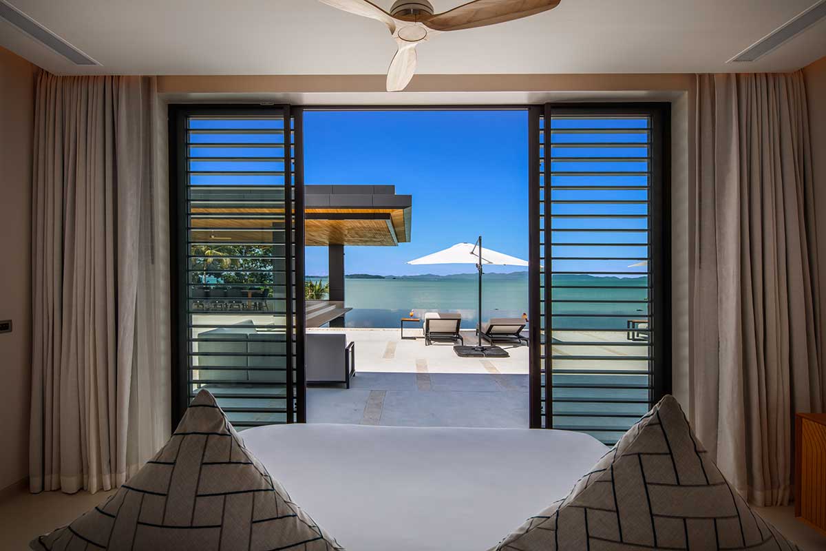 Its Scandi-Asian design welcomes you with a sleek and modern Thai facade paired with the warmth of timber that follows through into the interior. Wander through the marbled main hall, dining area, and state-of-the-art kitchen, or discover the bedrooms with ensuite bathrooms, all uniquely styled, but all with the same fantastic view.