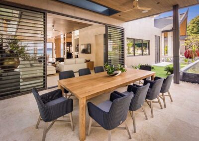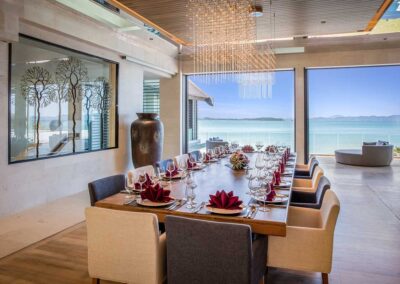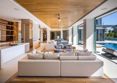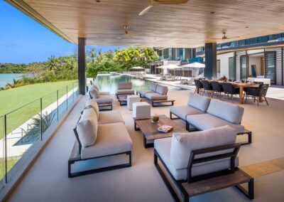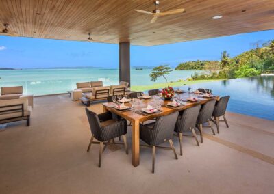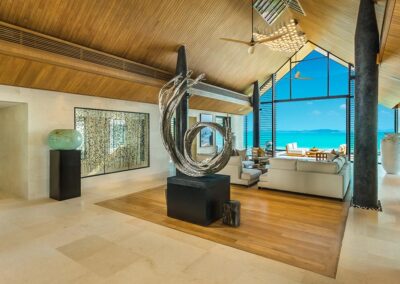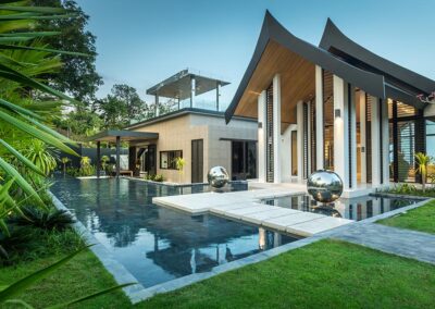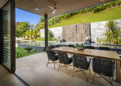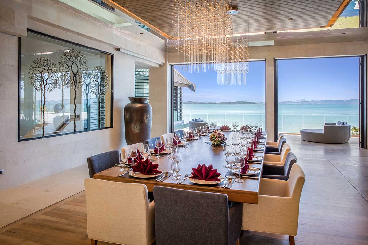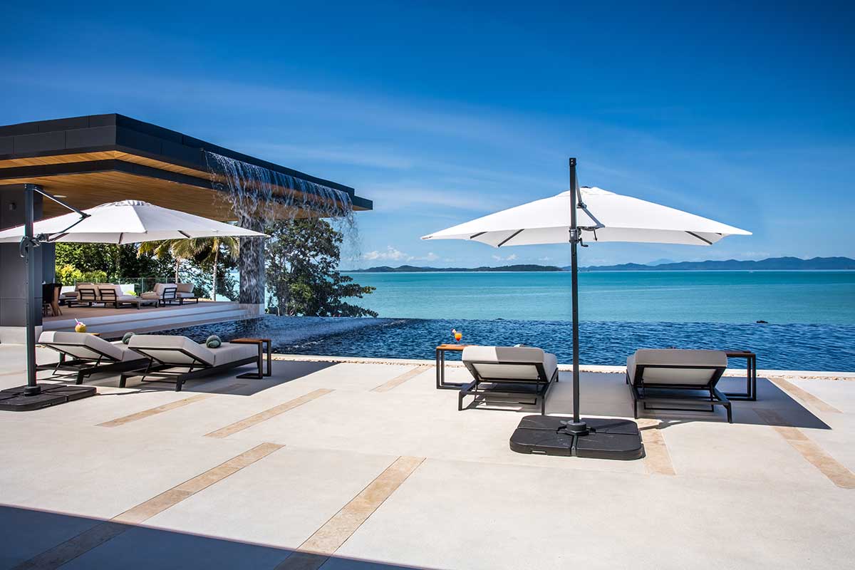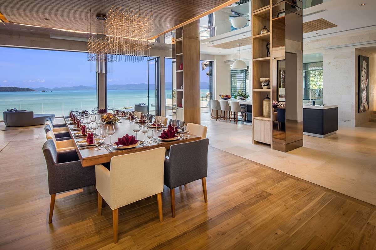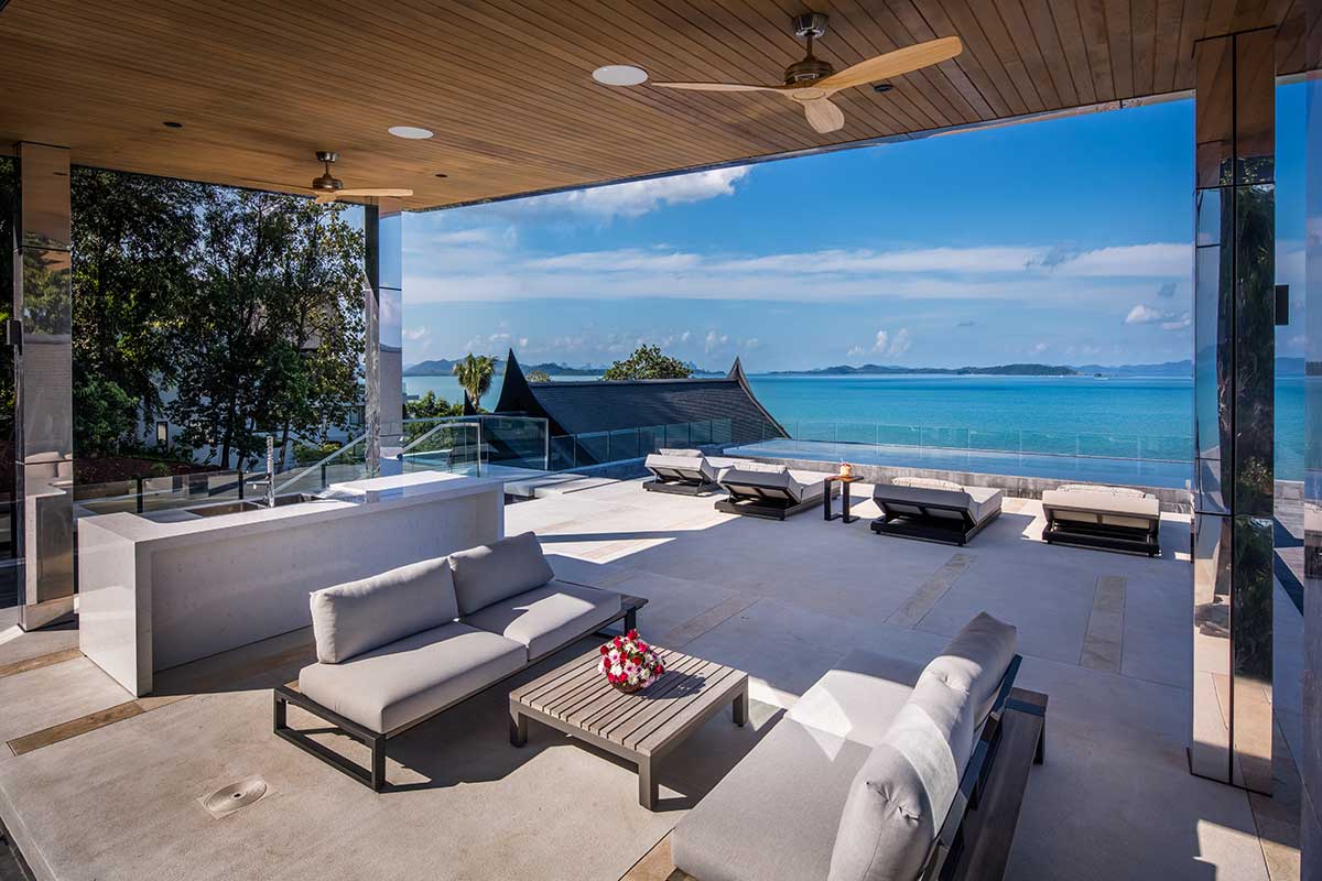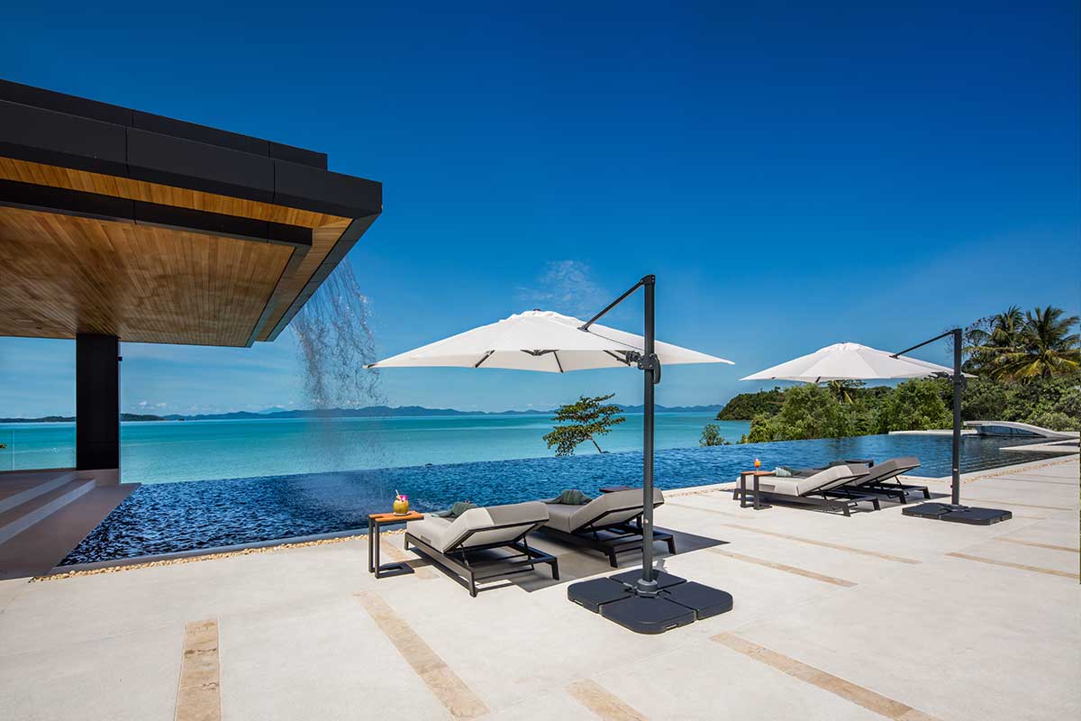 Its Scandi-Asian design welcomes you with a sleek and modern Thai facade paired with the warmth of timber that follows through into the interior. Wander through the marbled main hall, dining area, and state-of-the-art kitchen, or discover the bedrooms with ensuite bathrooms, all uniquely styled, but all with the same fantastic view.